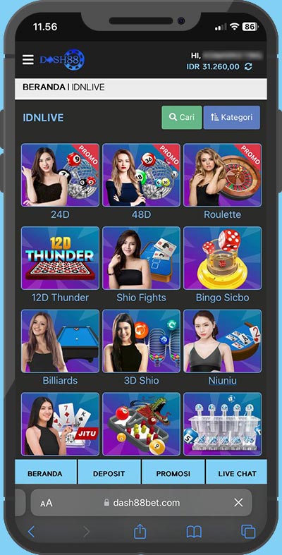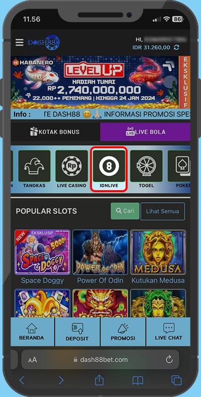 1. Pilih menu game IDNLIVE pada beranda DASH86.