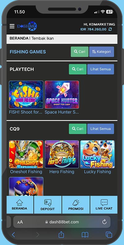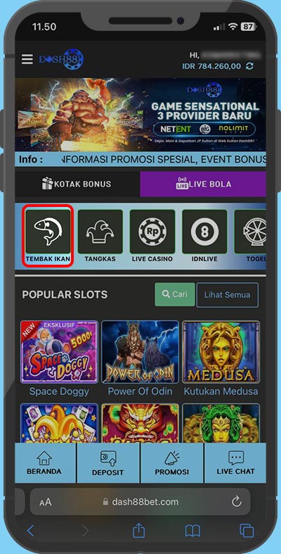 1. Klik menu game "TEMBAK IKAN" pada halaman beranda.